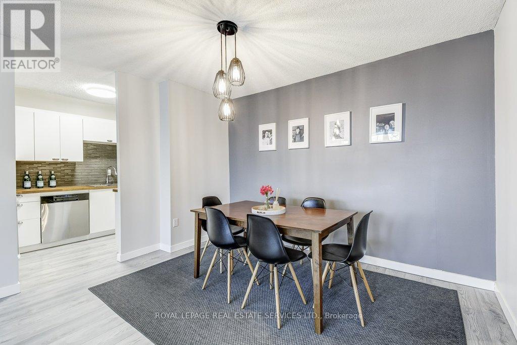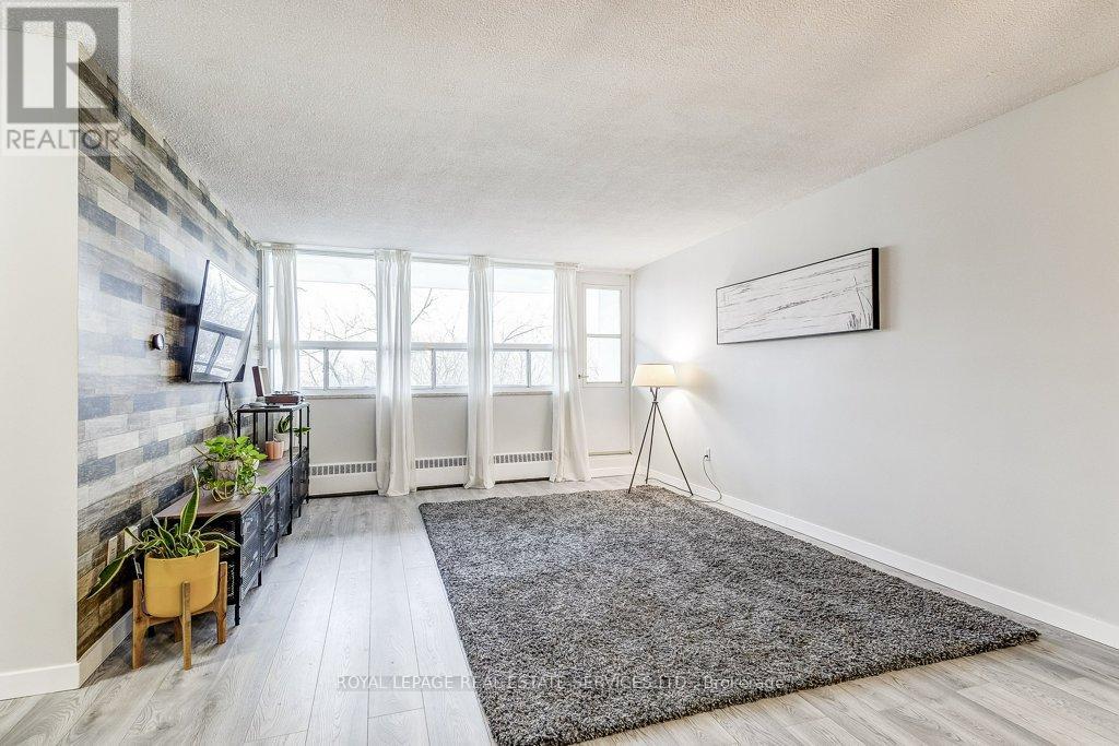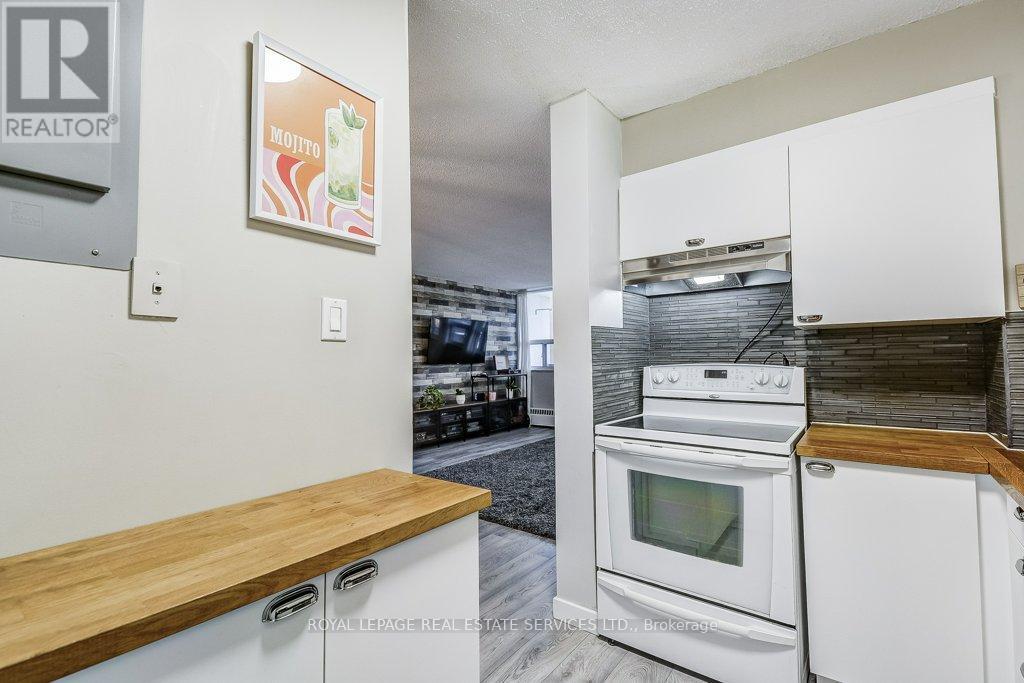 Welcome to Arbour Glen, a quietly set-back building in the heart of Kerr Village. This bright, inviting, 960 square foot, 2 bed, 1 bathroom condo offers well-proportioned living space with a warm, updated interior and desirable south exposure overlooking lush green grounds. Set back from the street, the unit enjoys a peaceful, private feel rarely found in such a central location. Recent renovations include a modern kitchen, updated bathroom, open concept living and dining room with feature wall, and quality laminate flooring throughout, creating a clean, move-in-ready space that reflects pride of ownership. Smart home feature of a Nest thermostat integrated with the Google Home app controlling kitchen and living room lighting, select switched outlets, and heat and A/C unit. Walk to Kerr Village shops and restaurants, downtown Oakville, Old Oakville, and the lakefront, with transit highways and daily amenities just steps away. Ideal for downsizers or buyers seeking comfort, convenience, and exceptional walkability in one of Oakville’s most established neighbourhoods. Public Open House Sunday Feb 22, 2-4 pm. (id:56590)