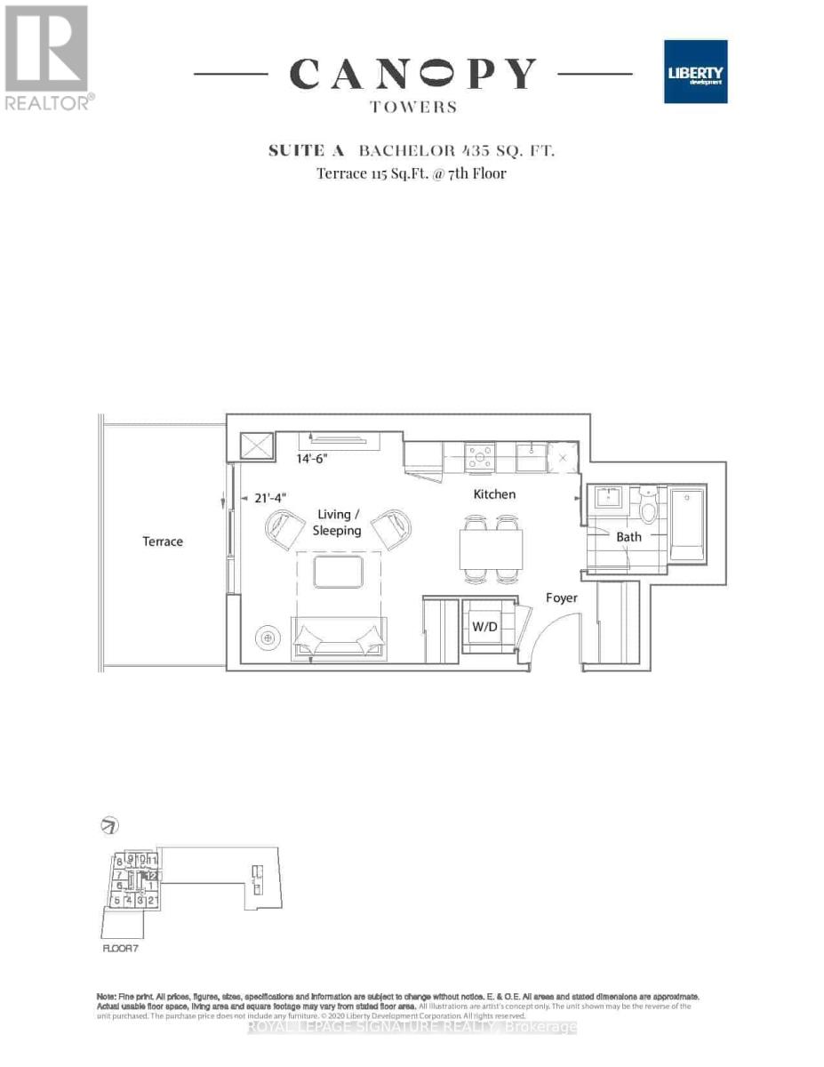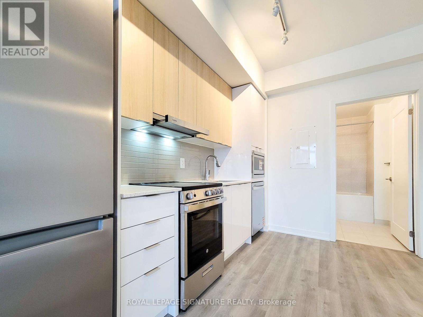 Welcome to Canopy Towers – a brand new condo residence at the prime corner of Hurontario & Eglinton in the heart of Mississauga. Suite 712 is a modern, efficient studio (bachelor) layout offering approximately 435 sq.ft. of well-designed living space plus an oversized ~115 sq.ft. private terrace – perfect for morning coffee, fresh air, or entertaining in the warmer months. Step inside to a functional foyer and a bright open-concept main living area with sleek contemporary finishes. The modern kitchen features built-in stainless steel appliances and smart storage, ideal for everyday living. The living/sleeping area is flexible and comfortable, with natural light and direct walk-out to your terrace for an indoor-outdoor lifestyle. Enjoy premium building amenities including 24-hour concierge, parcel room, pet wash, fitness centre and yoga studio, party room and private dining, games/sports lounge, media room, plus an incredible indoor/outdoor amenity collection including indoor pool, whirlpool, and sauna facilities. Located steps to shopping, restaurants, cafes, and everyday essentials, with transit at your doorstep and easy access to major highways. (id:56590)